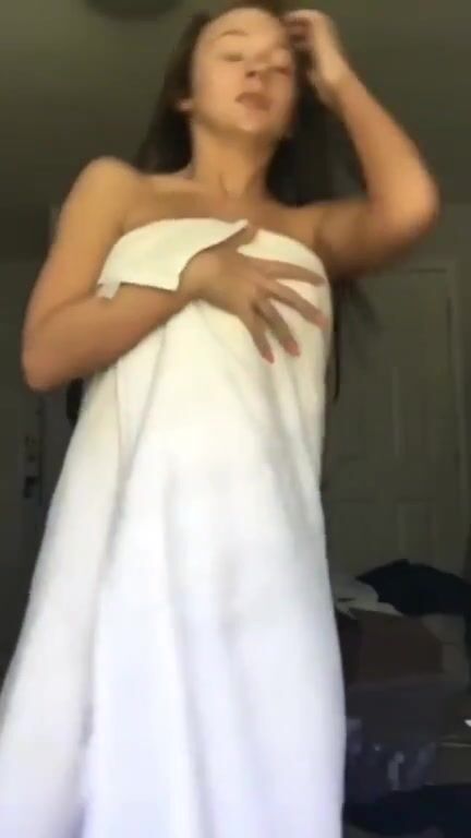 Towel drops, tits pop