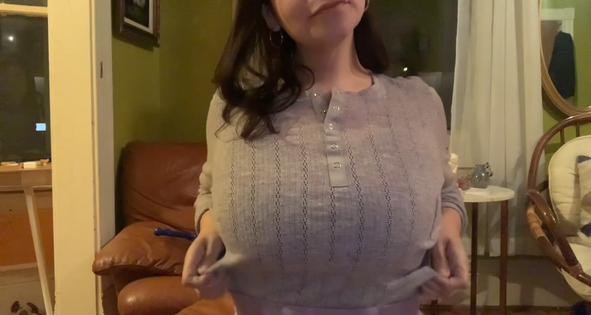 I would love to bounce my huge tits on your dick. Tit reveal